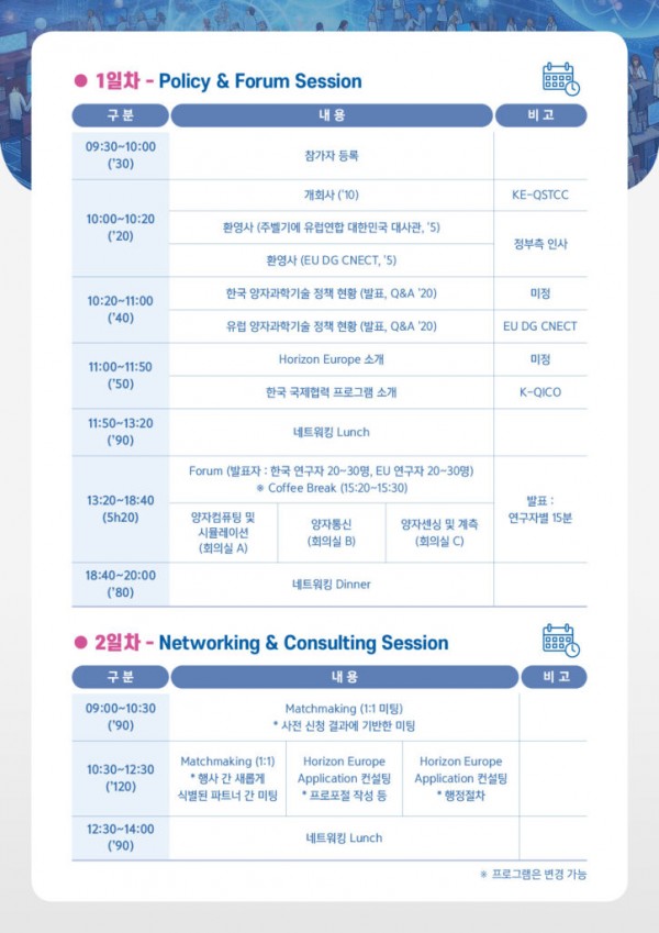한-EU 연구자들의 협력 기회 발굴을 지원하고자 본 네트워킹 포럼(양자과학기술)을 개최합니다.