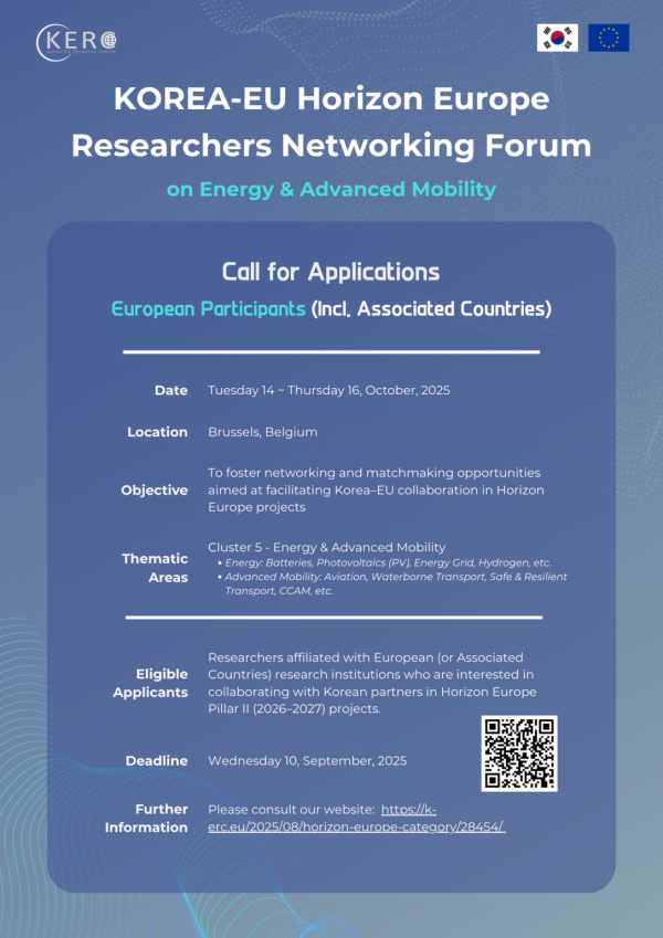 (Call for Applications) Korea-EU Horizon Europe Researchers Networking Forum on Energy & Advanced Mobility (Cluster 5)